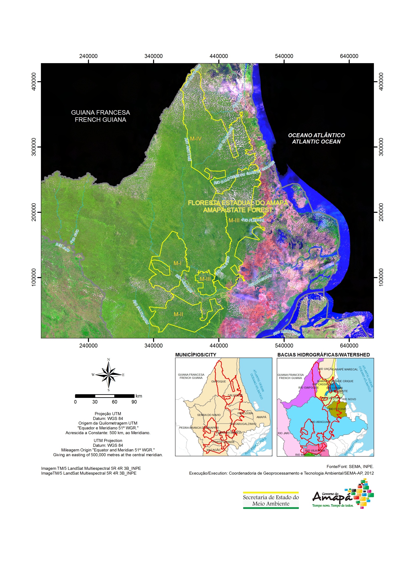 FONTE: Secretaria de Estado do Meio Ambiente do Amapá (SEMA/AP), livro: Áreas Protegidas do Amapá. , com apoio de técnicos do ICMBio/AP, da ONG Instituto de Pesquisa e Formação Indígena (IEPÉ).